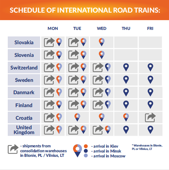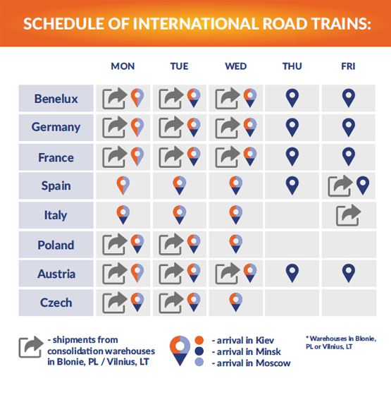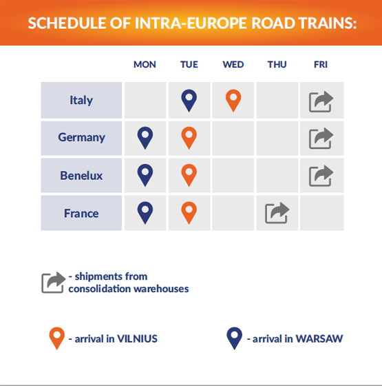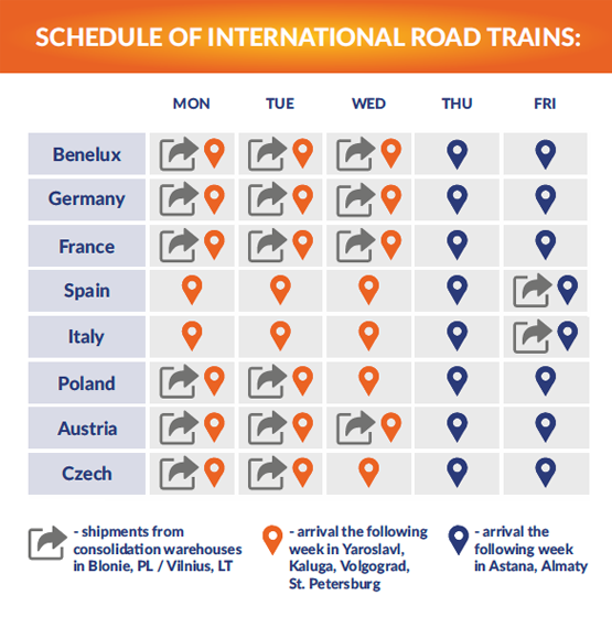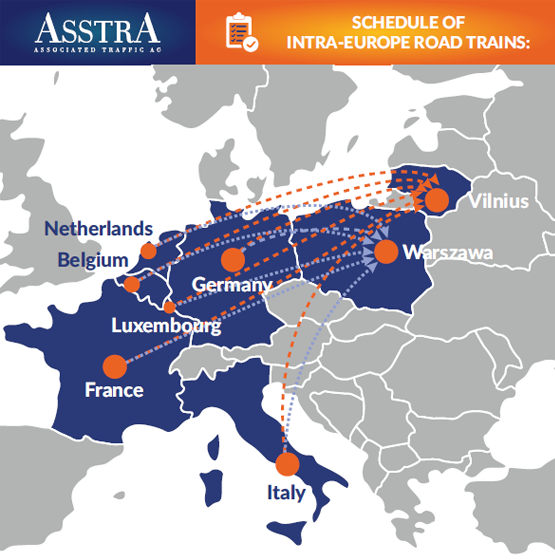 Destinations: Warsaw, Hamburg, Duisburg- Customers have to deliver the goods to appointed place of receipt by themselves or AsstrA will do it according to the transport order.