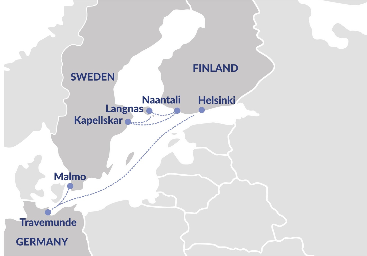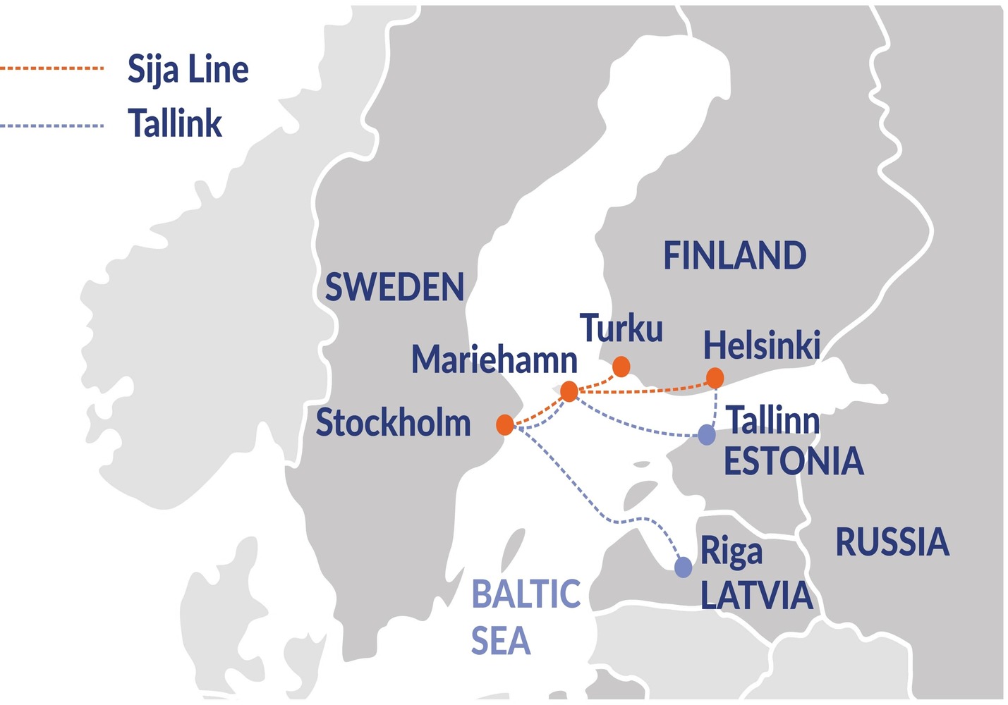Finnlines: SE – FI, SE – DE, FI – DE.