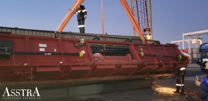 According to our key customer’s requirements, AsstrA experts organized the delivery of grain and forage harvesters. The overall dimensions of the equipment exceeded 10 meters. The total weight was over 25 tons.