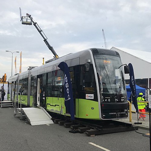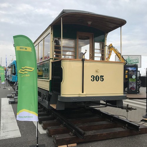 This year, trams were introduced by Stadler, PESA, and Modertrans. As a ‘highlight,’ one of the oldest tram trains in Poland was exhibited. The tram has a retro Bergische Stahlindustrie carriage with a Carl Weye wagon and belonged to MPK Poznań, Poznań’s municipal transport company.