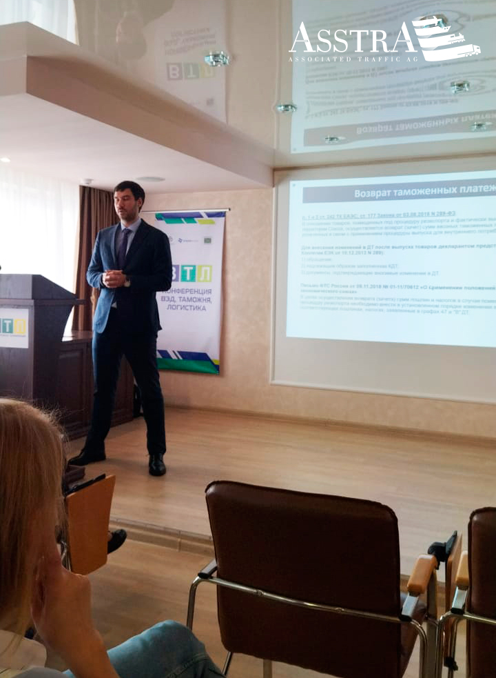 In his presentation at the conference, Valentin Vakhrushev shared practical insights related to handling unforeseen complications with consignment sales. In particular, he covered re-export customs procedures, how to return goods to suppliers, and issuing a refund for previously paid customs duties.