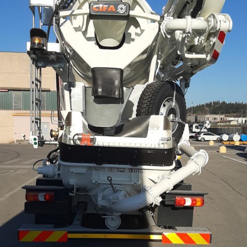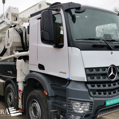 In March 2021, AsstrA Client Construction Machinery LLC requested road transport for a CIFA MK32 PB808L concrete mixer truck, which has a Mercedes Arocs 4145 8x4 / 4 chassis. The delivery route ran from the Italian city of Castiglione delle Stiviere to Kyiv, Ukraine. The AsstrA Cars & Trucks Delivery Department team organized a driver for this large, specialized vehicle whose dimensions of 10,272 x 2,550 x 4,000 mm and weight of 24,420 kg were close to permissable limits and required special permission to transport this way.