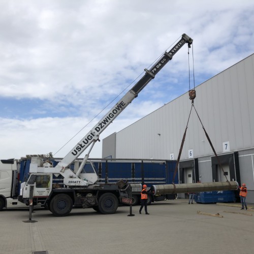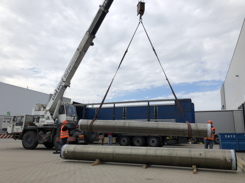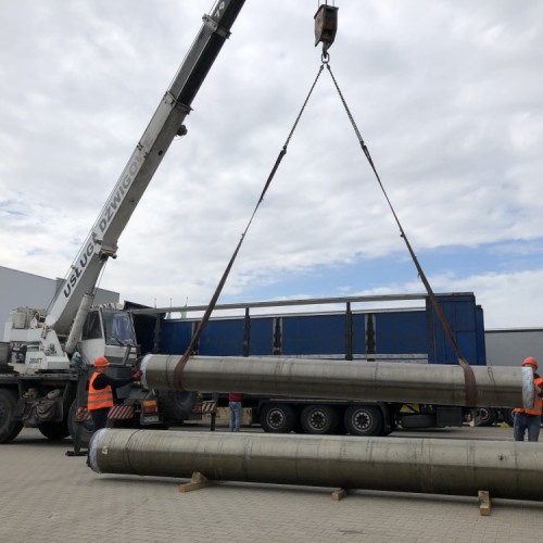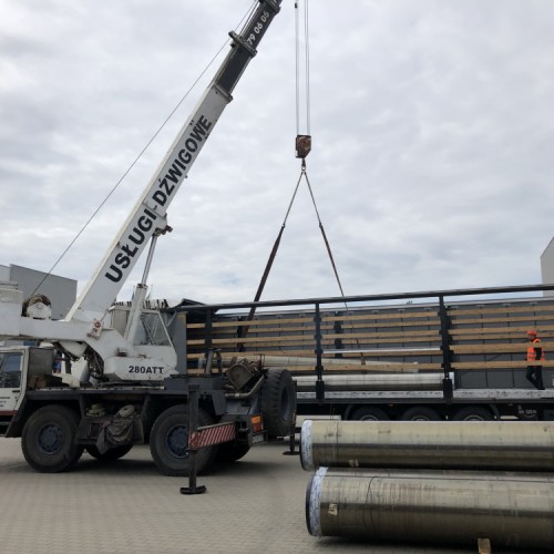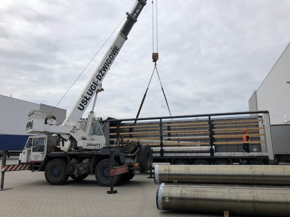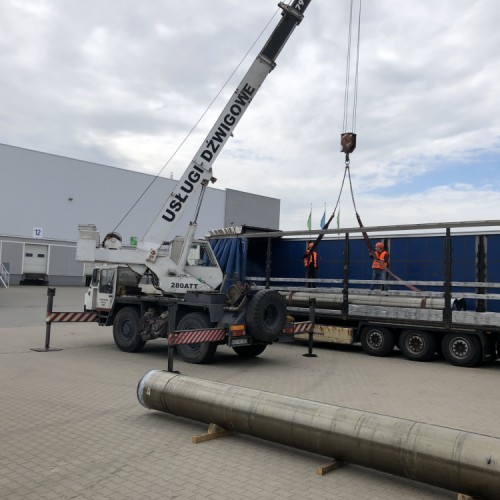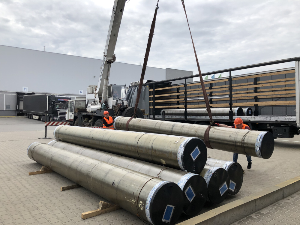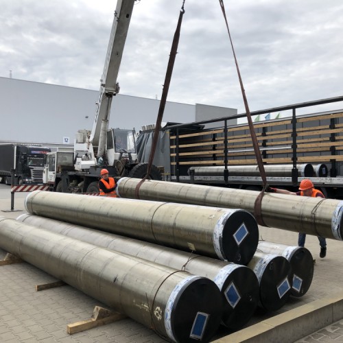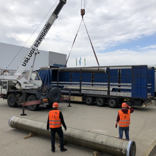During the implementation of the project, on the route Italy – Russia, Spain – Russia, within two weeks 20 transports were held. There were 4-5 pipes on each truck, weighing 4.5 tons each. In total, 25 trucks were used in the transport.