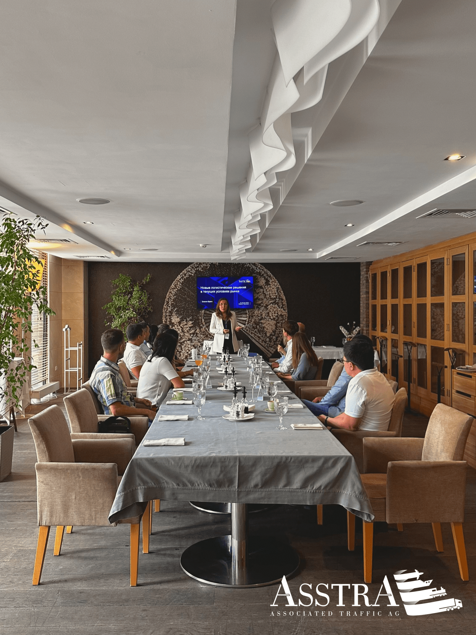 On August 22, AsstrA held a networking business brunch in Almaty, where Vladislav Lagun, Chief Commercial Officer, and Ramilya Akhmetova, Almaty Branch Director, discussed new supply routes, logistics solutions, and legislative changes regarding cargo transportation.
